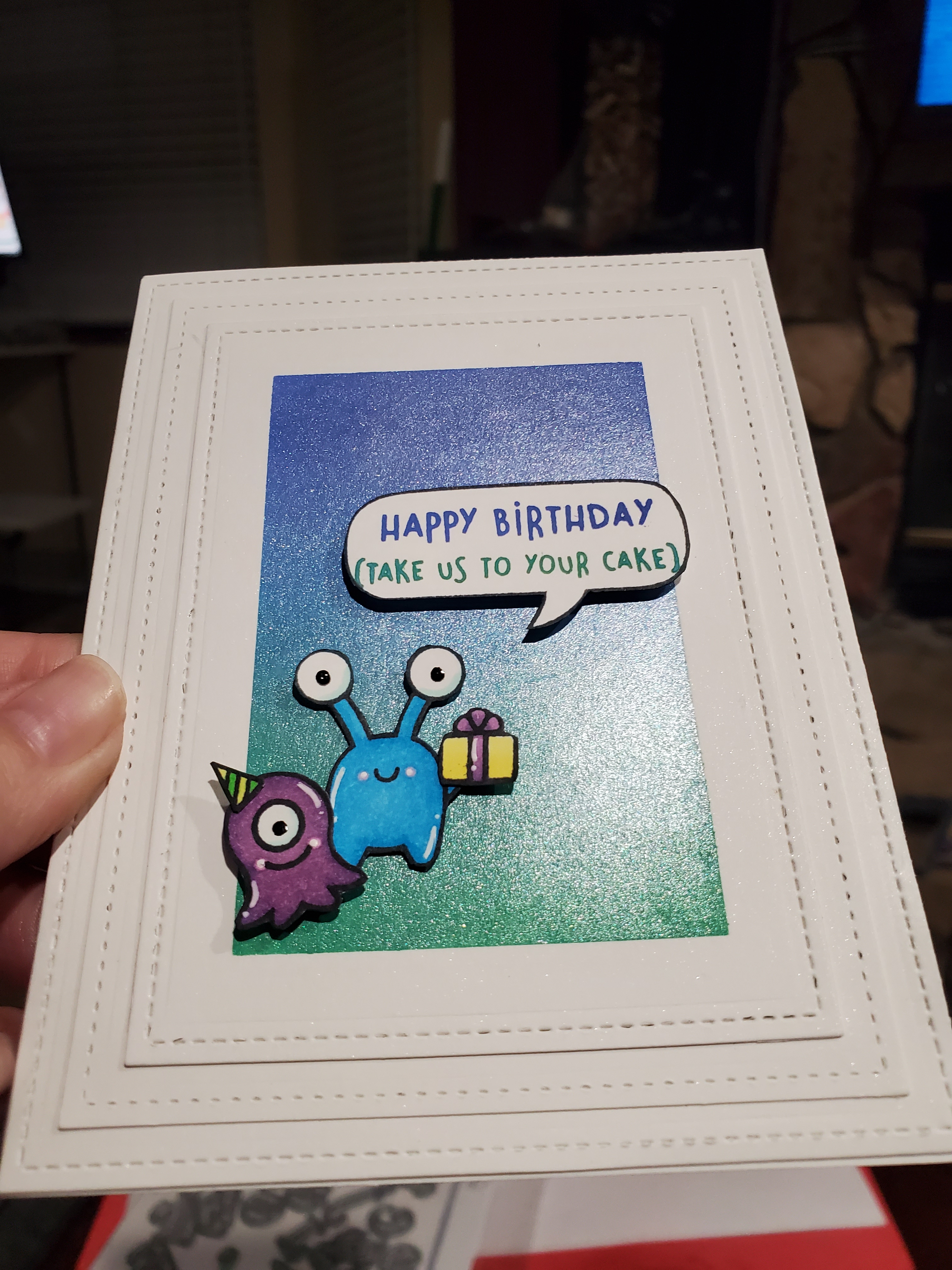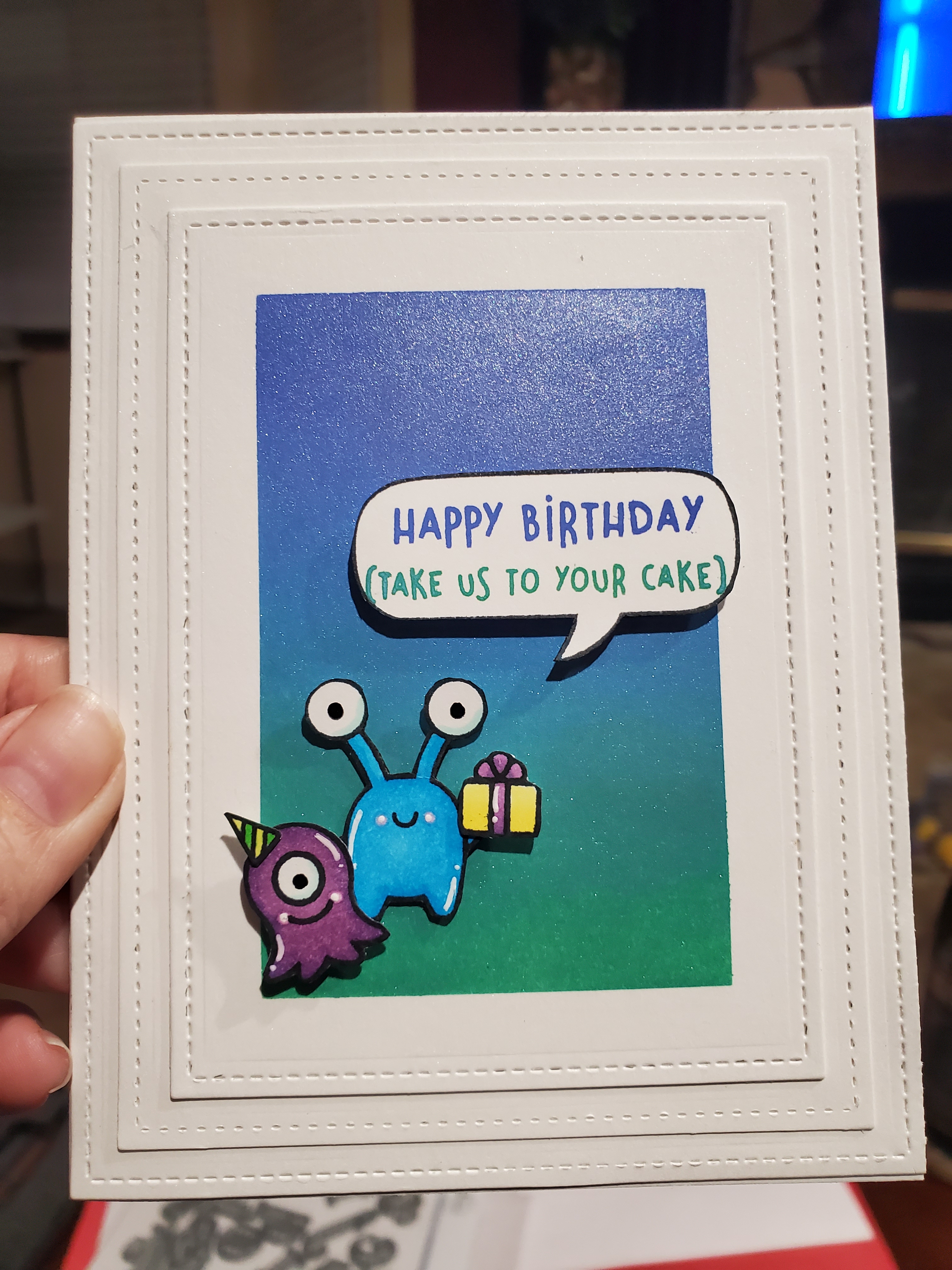 I just love the Beam Me Up stamp set! This card was also my chance to try out the metallic background idea that Jennifer McGuire shared here.