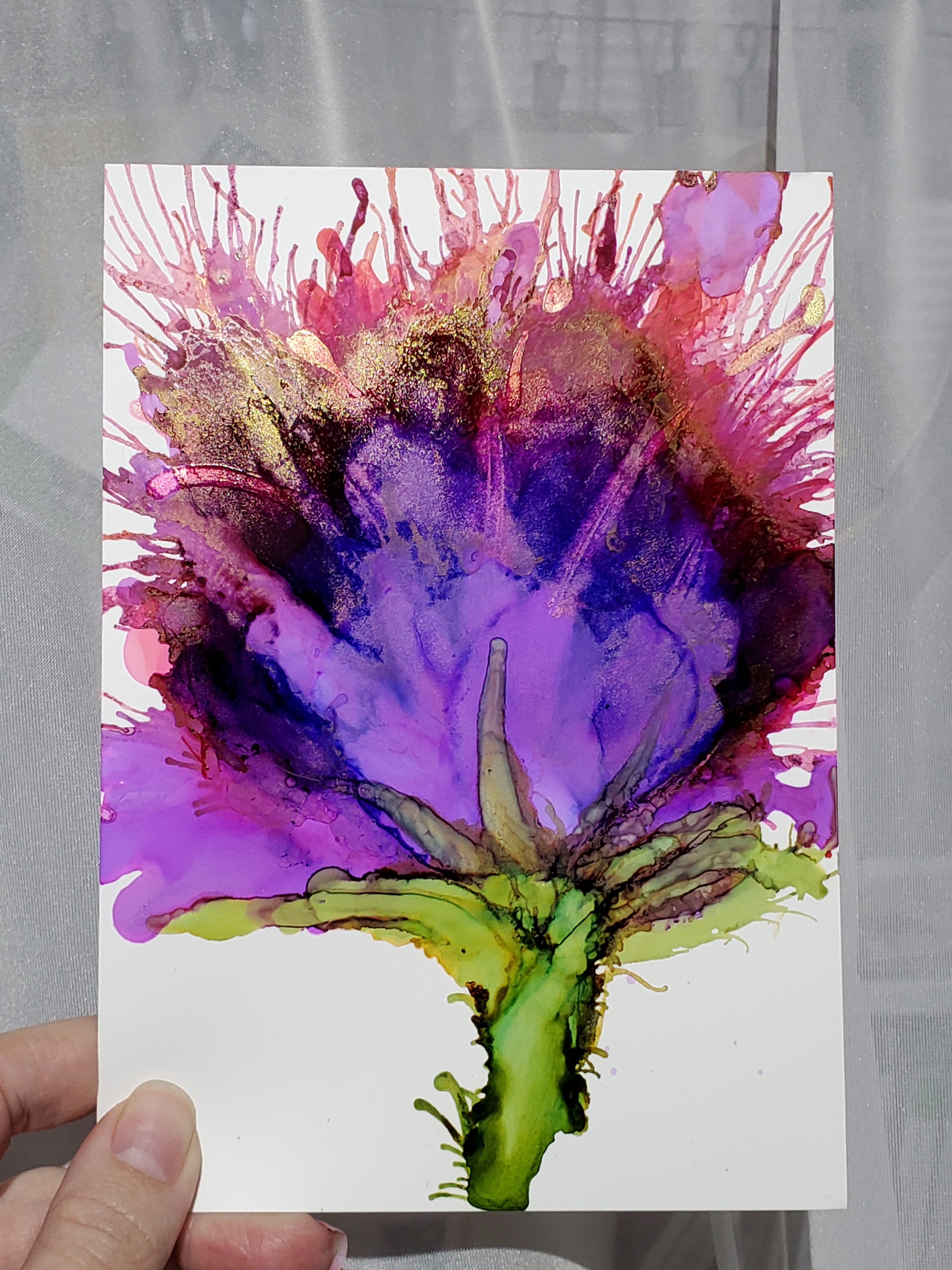 So I was going to try to participate last week in the Floral challenge, but I got sidetracked trying to teach myself how to make a flower using alcohol inks!