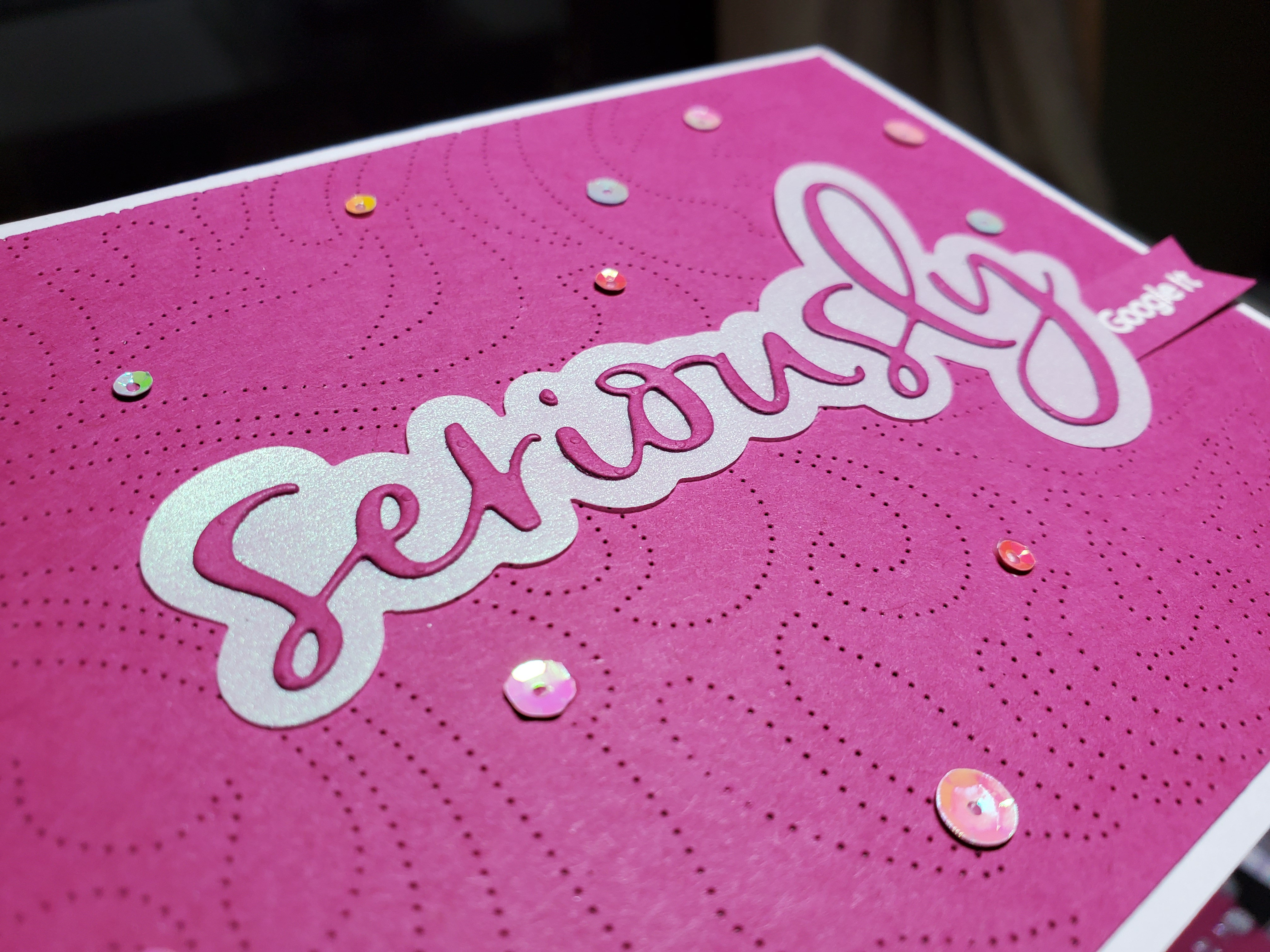 - before cutting the “seriously” apply double sided tape to the back so the fine letters go on easy