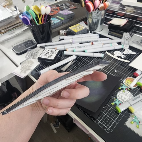 - If you’re using a black base, color your edges of your white foam with black copic 😉