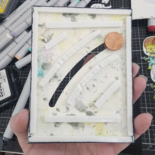 - Don’t forget to leave enough room between the track and the dimensional foam so there is room for the penny to move.