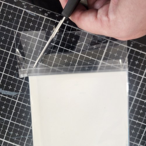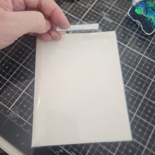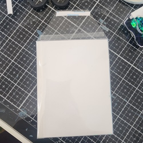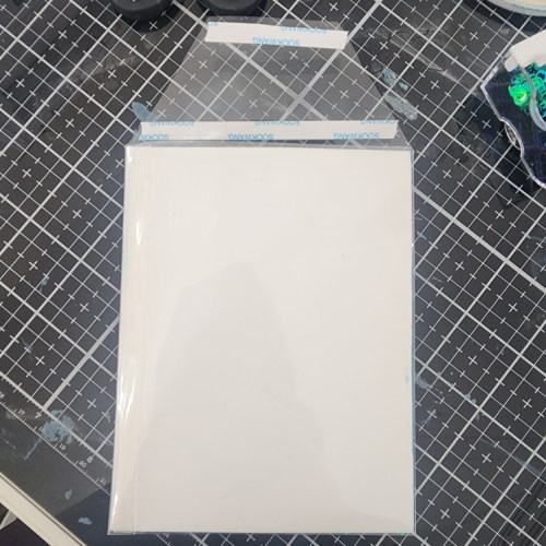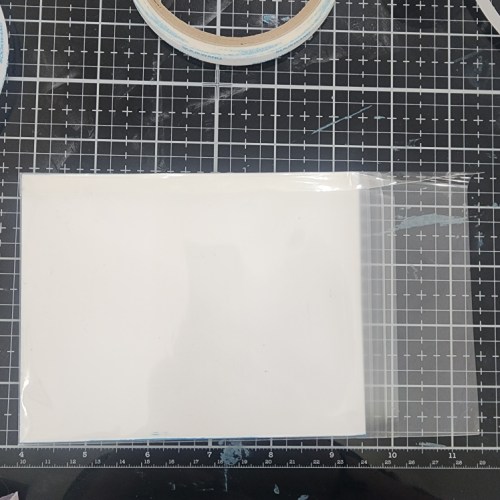I had some fun circle shaker bits in my stash so I decided to make it a shaker! Ever made an infinity shaker? So easy! I also find it’s less likely for me to leak bits all over the place haha. I use a cellophane baggie (the same ones I use to protect A2 cards), pull it right around the panel and adhere with good double sided tape. I fill it up and seal the packet shut! Viola!