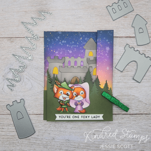 Ok here’s the final card! I know these wiper interactive cards are all the range right now but did you know that the design has been around for YEARS? And you can easily make it yourself? It’s literally two identical panels, scored twice on one end and glued together on the ends, then the pop up is just a strip of paper with a fold at an angle and inserted into the scored edges on one side of the card. I used the tree scene craft die again and the build a castle dies.