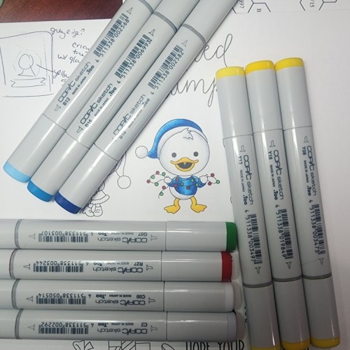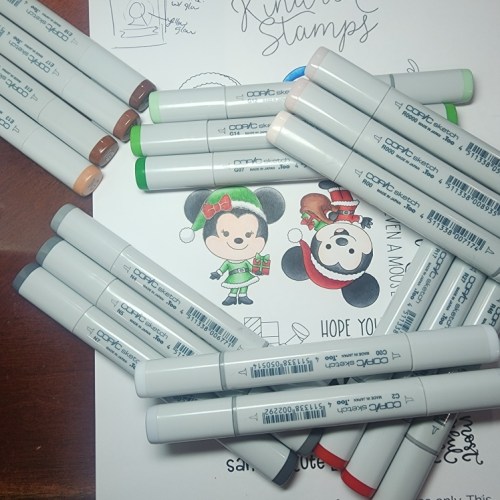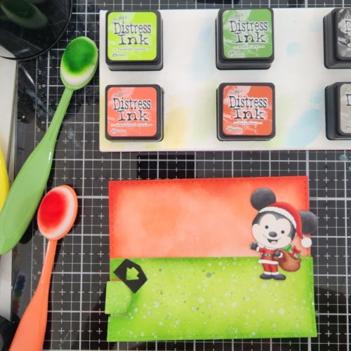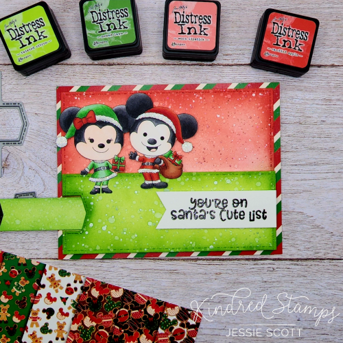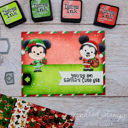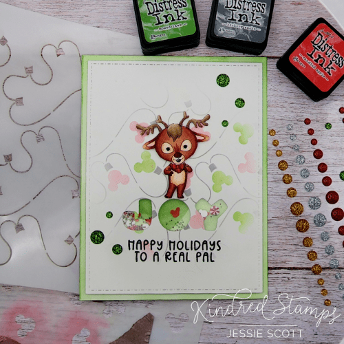 Who is your favorite character in this new kit? Mine is this handsome fella, making his Christmas bright! I thought I would give him his festive outfit in his traditional colors and I love how it looks with this lovely glow blend. Christmas doesn’t always have to be red and green! I couldn’t resist adding glue to the white parts of the hat and the lights and sprinkle glitter on it for added pizzazz. Then I had to do it to all the other characters you’ll see next haha.
