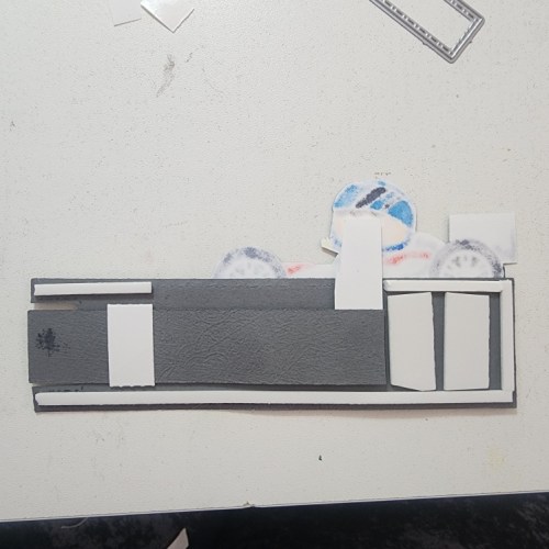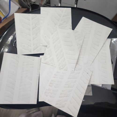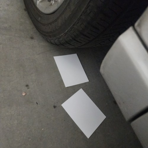 My first card is a fun card I literally ran over with my car to make! Its hard to see after I added splatter and inking but there’s a tire print on it hah!