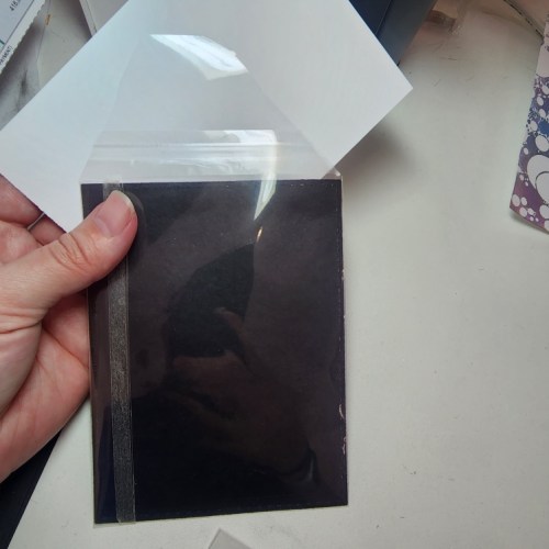 If you haven’t made an infinity shaker before, it’s really quite simple! I use a plastic envelope sleeve, scortape it tight on the side, fill the pocket with shaker goodies (I forgot to take a photo filling it haha), and seal it up! I cut my flap at the corners in so there’s not a bulky edge on the corners.