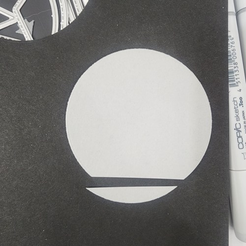 - Add the vellum circle, trimmed at 3/4″. Use double sided tape to adhere it slightly inset from the top of the spaceship.