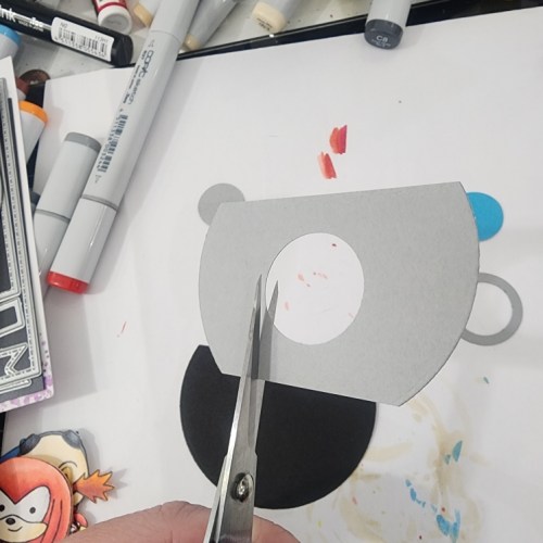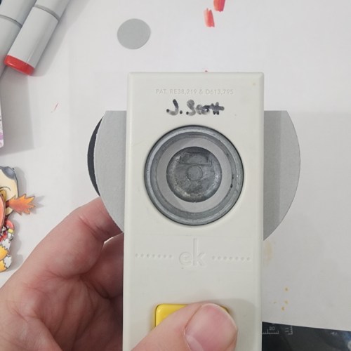 - Take the 3/4″ grey circle from step 4 and punch a second 3/4″ circle
