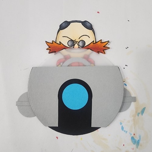 OK this next card… I came up with a fun accessory for our evil genius! SPACE SHIP!!!