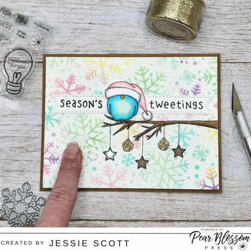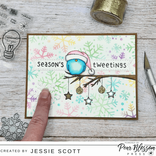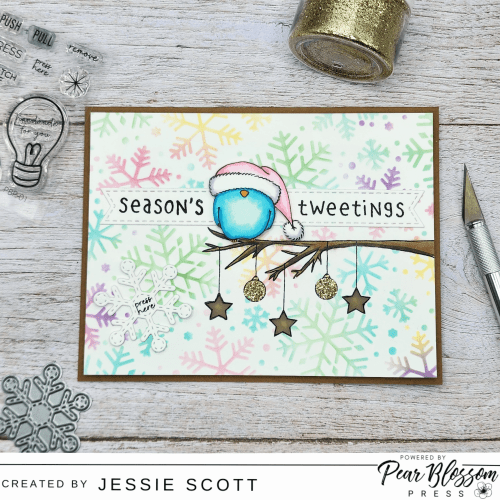 Greetings! Let’s have some fun with products from Pear Blossom Press today! This card features the AMAZING Pear Blossom Press Twinkle Lights and I’m also showcasing the adorable Gerda Steiner Season’s Tweetings Set on their blog today.