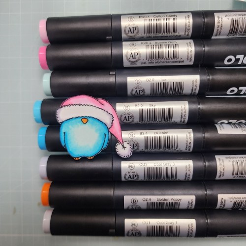 Next I colored my super adorable birdie with my Olo Markers. This little guy is also from Gerda Steiner Designs Season’s Tweetings Set.