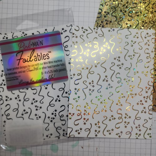 I used the super fun Pink and Main Confetti Foilable Panels with the Starry Gold CheerFoil in my MINC to create this super adorable background for celebrating a Jackpot.