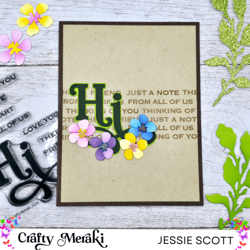 Supplies Used: this card uses the Meraki Moments Hi Stamp Set and Crafty Meraki Wreath Builder Artisan Flora Para-Dies.