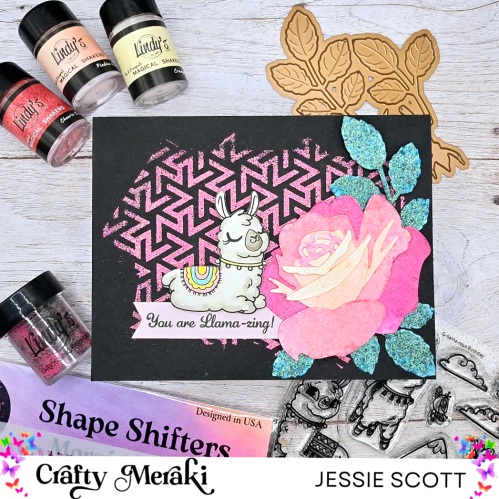 Greetings! Let’s have some fun with products from Crafty Meraki today! This card also is a collaboration with Lindy’s Gang Magical Shakers and Embossing Powder. Get 10% off your purchase at Lindy’s using my code at checkout!