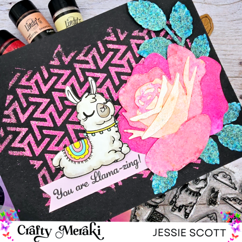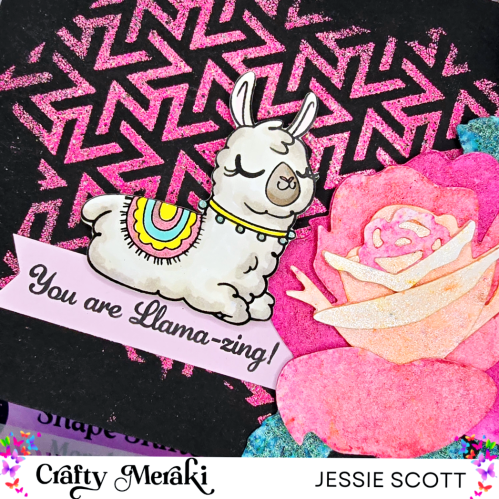 I needed something extra, so I added this adorable Llama to sniff this beautiful shimmery rose!