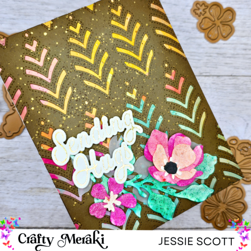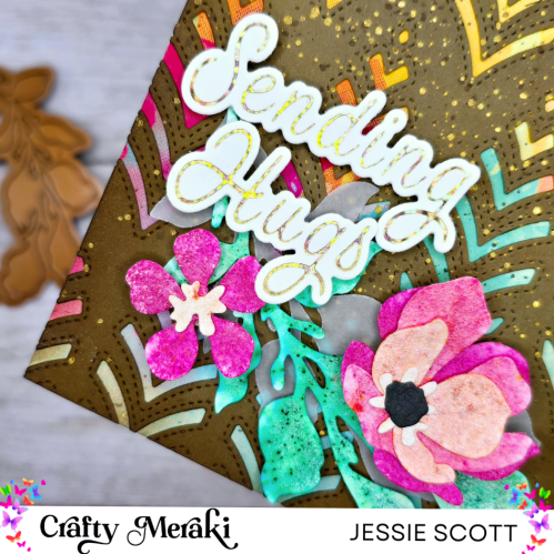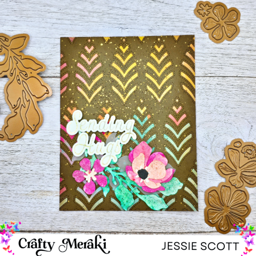 Flowers were colored using Lindy’s Gang products. Get 10% off your purchase using my code at checkout! Code: CHEVYSCOTT. I used these beautiful shakers for each layer of flowers/leaves.