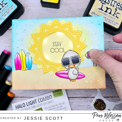 My adorable Sunny Summer light up card using Pear Blossom Press halo lights and Gerda Steiner Designs Catch a Wave duckie stamp set is in the brackets this month for the Card of the Month voting with Creative Scrapbooker Magazine!