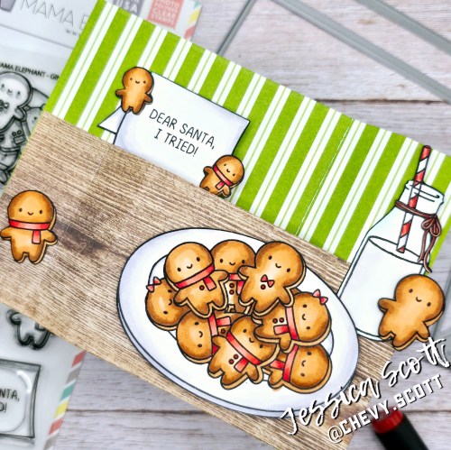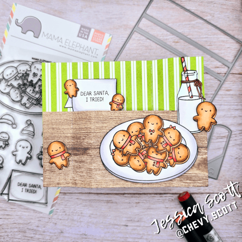Here’s what we are making! I used the Mama Elephant Gingerbread Cookies stamp set and the Mama Elephant Wiper Surprise Interactive Dies.