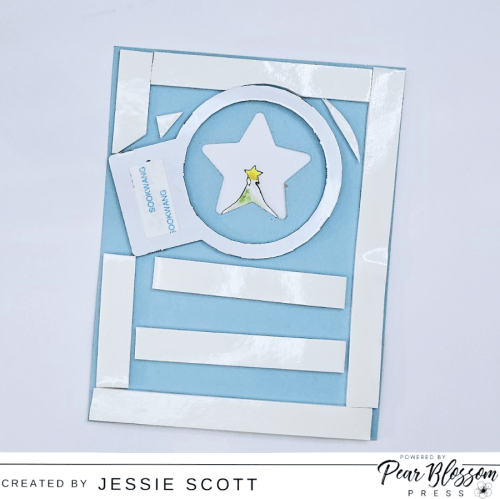 Its a good thing I used the World’s Greatest Foam Tape because I’m dumb and forgot to add my gold paper behind the star before I put it down on the card bwahaha. It came right back up with a little pull and no tearing!