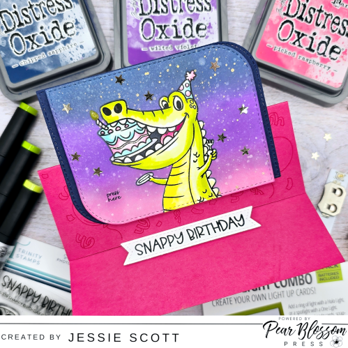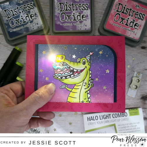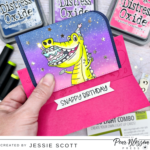 I couldn’t resist a fun fold 😉 The light up panel is attached to the fun fold on the bottom half and it works great! I love using the longer Halo Light Combo Pack One Lights to put my “push here” exactly where I want.