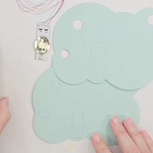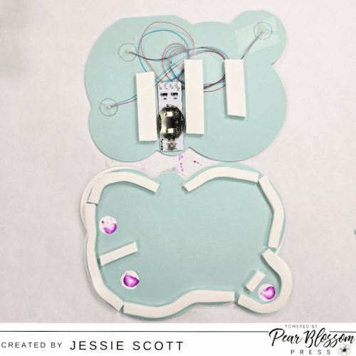 I trace where the holes are in the top piece onto the card base so I know where to place the lights. I also trace where the button will need to be.