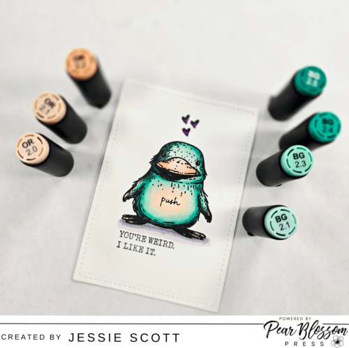 First I colored the super cute image from Unity Stamp Co. It’s called Platypus Peculiarities. I colored the image with my OLO Markers.