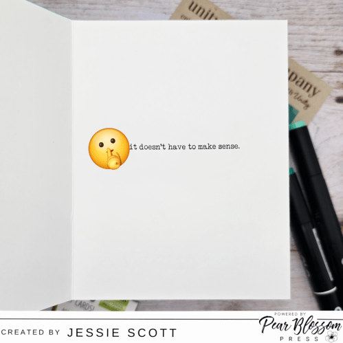 For one last finishing touch, I stamped the inside of the card with another sentiment from the set. It has a few more letters in front of “it” if you know what I mean! 😉