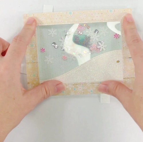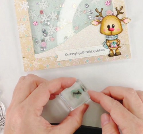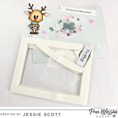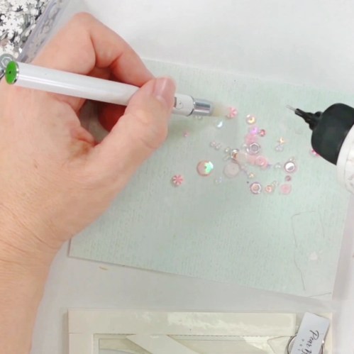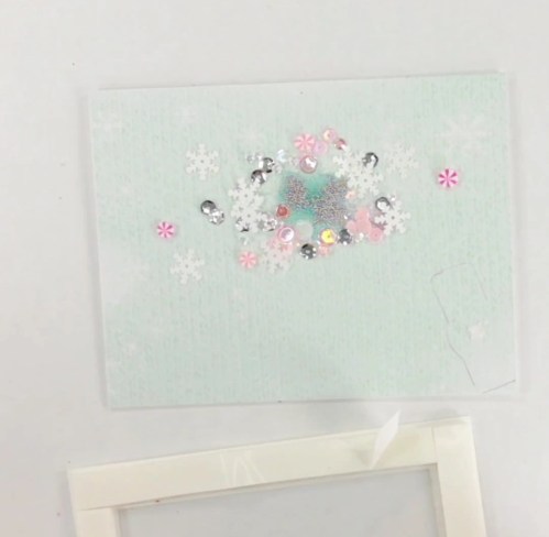 To add some more flare and match the shaker bits inside, I added some of the white snowflake shaker bits from the inside to the border on the outside.