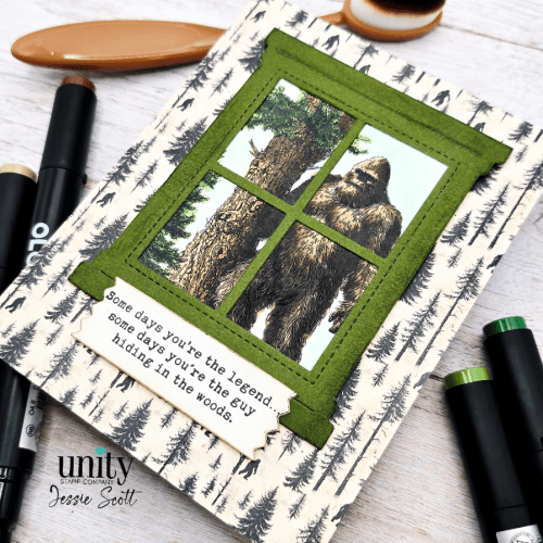 Greetings! Let’s have some fun with products from Unity Stamp Company today! Keep an eye out for this Sasquatch in the woods. It’s the new Unity Stamp Company Legend of the Pines set. Check out the video below for the full process!