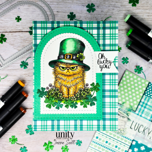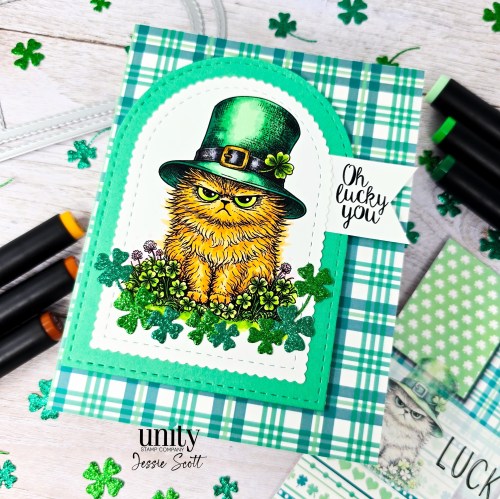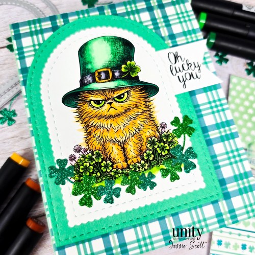 Greetings! Let’s have some fun with products from Unity Stamp Company today! I’m using the new Pissy Kitty, Zero Luck Given. Coloring and assembly video at the end of this post!
