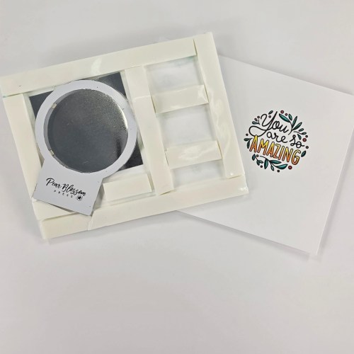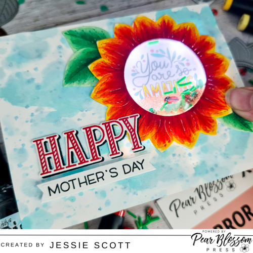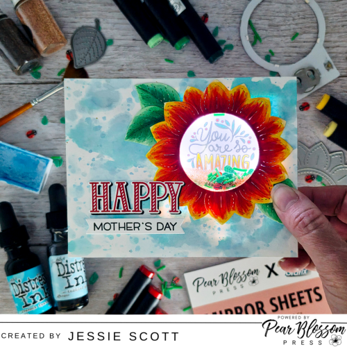 Greetings! Let’s have some fun with products from Pear Blossom Press today! Have you tried the new Mirror Sheets that turn clear with a light behind it? Let’s try to make a shaker surprise Mother’s Day message with a Pear Blossom Press Halo Light and a Shaker Dome.