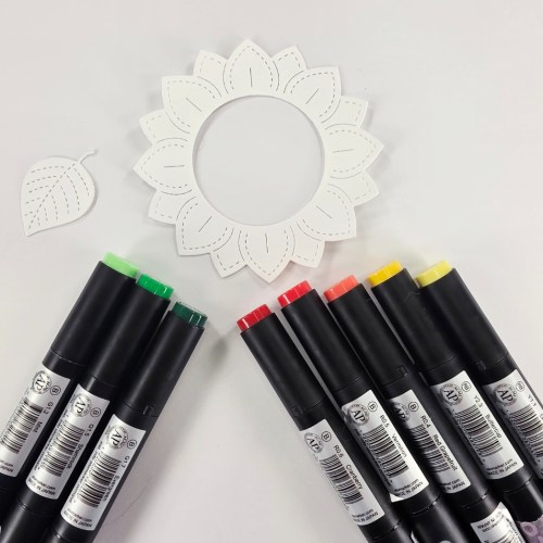 Line up the Pear Blossom Press Halo Light behind the circle behind the mirror sheet. Make sure the button will be hidden under a leaf once placed. Fill in the surrounding card front with supporting Pear Blossom Press World’s Greatest Foam Tape or double thick foam tape. Adhere to the card base.