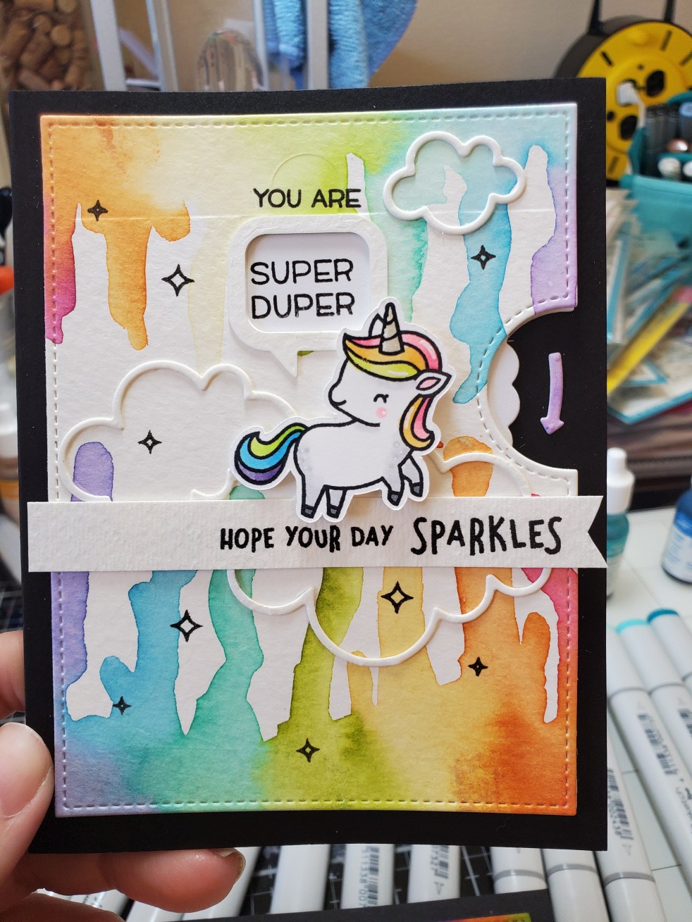 Today I am participating in the LAWN FAWN CHALLENGE 79 – INTERACTIVE CARDS. I made another Reveal Wheel unicorn card - this time a little lighter and made it for a friend as an uplifting card. She is AWESOME! This one has "your are" at the top and scrolls through SUPER DUPER, the best EVER,… Continue reading LAWN FAWN CHALLENGE 79 – INTERACTIVE CARDS